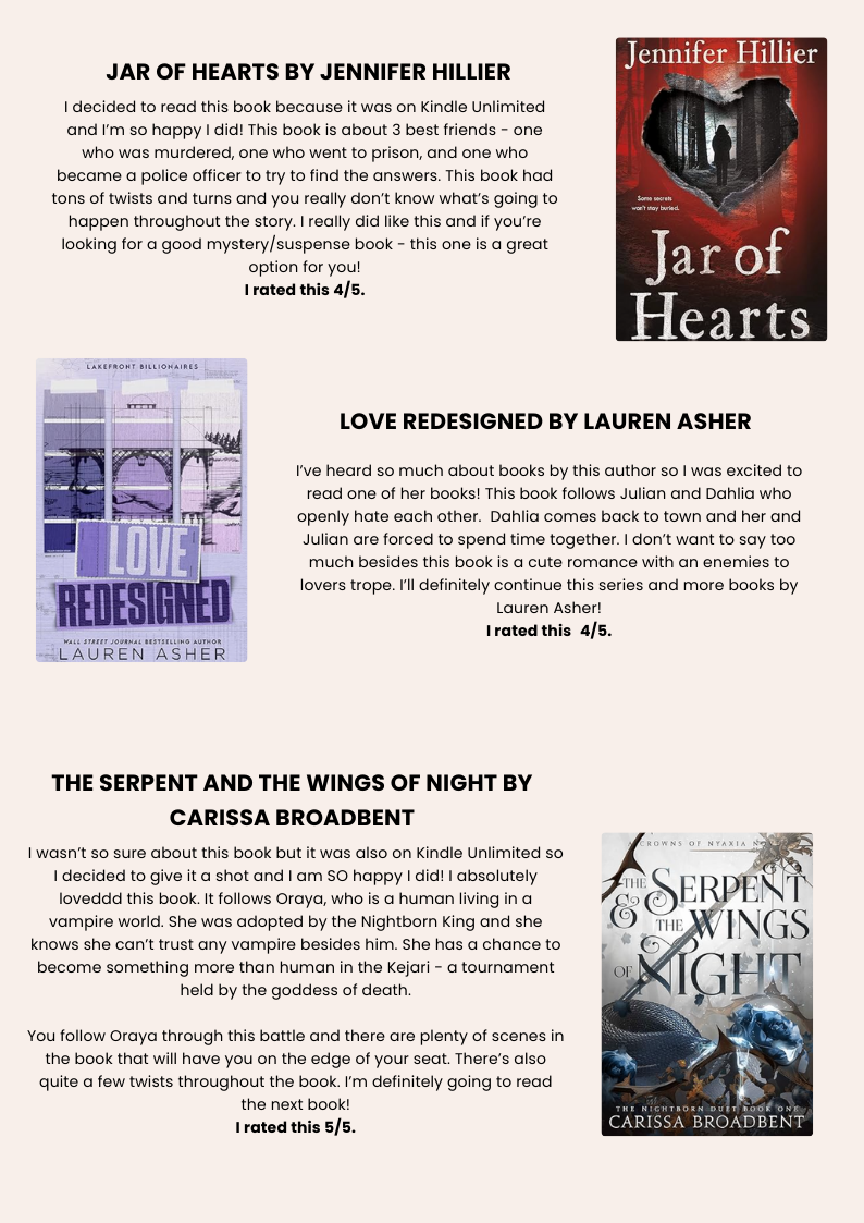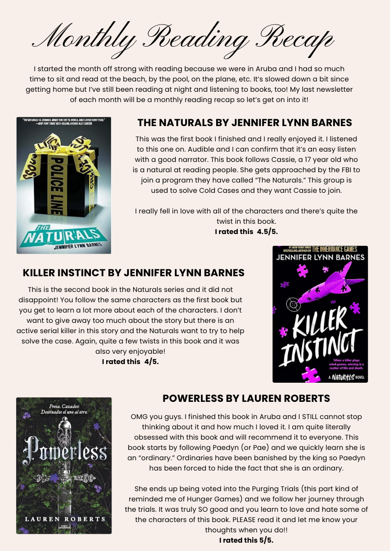 I hope you enjoyed my monthly reading recap! I would love to hear what books you read in January and if you have any you’d recommend :-).